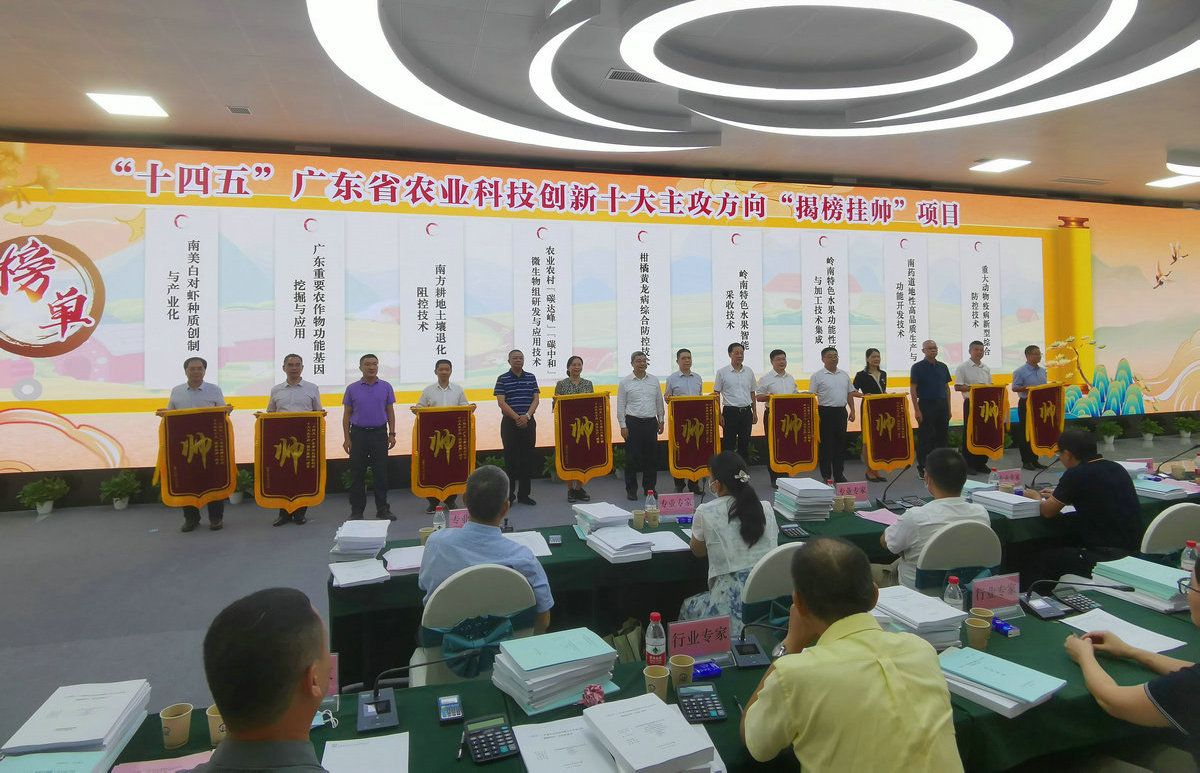 中大新聞網(wǎng)廣州9月3日電(通訊員劉薇薇)為推進(jìn)創(chuàng)新鏈與產(chǎn)業(yè)鏈深度融通發(fā)展,探索農(nóng)業(yè)科研聯(lián)合攻關(guān)機(jī)制,由廣東省農(nóng)業(yè)農(nóng)村廳主辦,廣州國(guó)家農(nóng)業(yè)科創(chuàng)中心承辦的《“十四五”廣東省農(nóng)業(yè)科技創(chuàng)新十大主攻方向“揭榜掛帥”》項(xiàng)目競(jìng)選評(píng)審于8月25日至26日在廣州國(guó)家農(nóng)業(yè)科創(chuàng)中心舉行。全省共有116家科研機(jī)構(gòu)和97家國(guó)家、省級(jí)企業(yè)法人單位跨界組合入圍本次“揭榜掛帥”的總決賽,20家牽頭申報(bào)單位的27個(gè)項(xiàng)目團(tuán)隊(duì)進(jìn)行“揭榜掛帥”競(jìng)選評(píng)審。中山大學(xué)牽頭申報(bào)的《南美白對(duì)蝦種質(zhì)創(chuàng)制與產(chǎn)業(yè)化》項(xiàng)目成功揭榜。