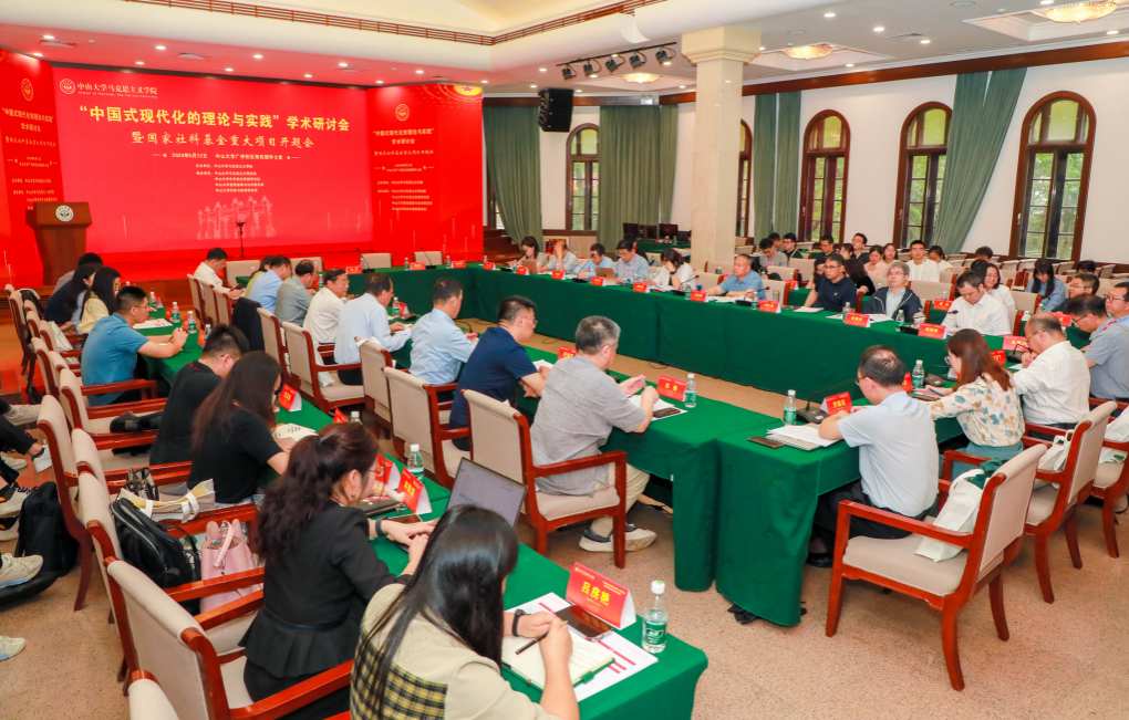 國家社會科學基金重大項目“中國共產(chǎn)黨領(lǐng)導中國式現(xiàn)代化的歷程與經(jīng)驗研究”“新時代堅持和運用好毛澤東思想活的靈魂研究”開題會分別由中山大學馬克思主義學院副院長張浩教授,中共中央黨史和文獻研究院第四研究部處長、《當代世界與社會主義》執(zhí)行主編王瑾編審,中山大學馬克思主義學院黨委副書記郭燕同志主持。