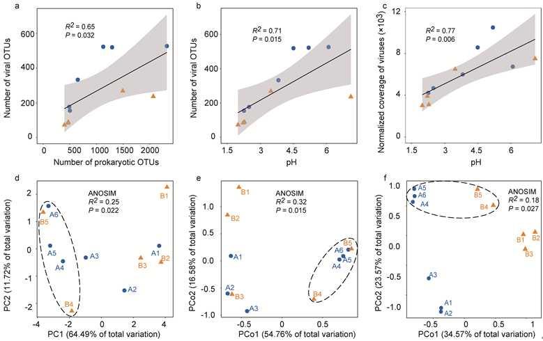 病毒多樣性、豐度和群落組成隨尾礦深度的變化
