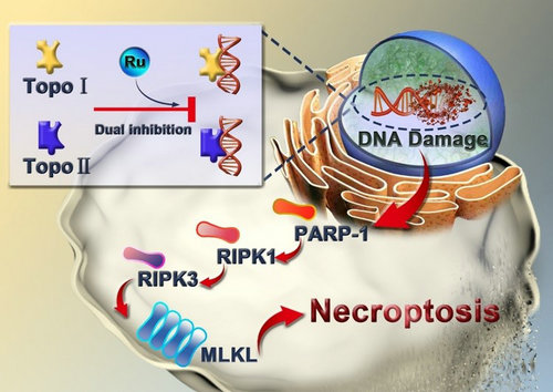 圖1. 拓?fù)洚悩?gòu)酶I/ II雙重催化抑制劑誘導(dǎo)耐藥腫瘤壞死性凋亡示意圖