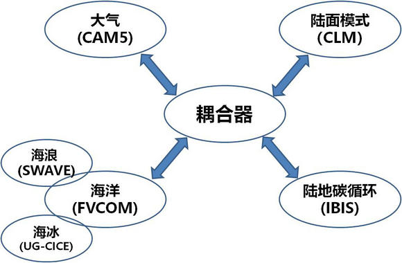 構(gòu)建了中山大學(xué)集成地球系統(tǒng)模式(SYCIM,Sun Yat-Sen University Integrated Earth System Model),集成了海洋(包括海冰、海浪)、大氣、陸面模式、陸地碳循環(huán)等關(guān)鍵模塊(圖1),構(gòu)建了完整的地球系統(tǒng)模式。