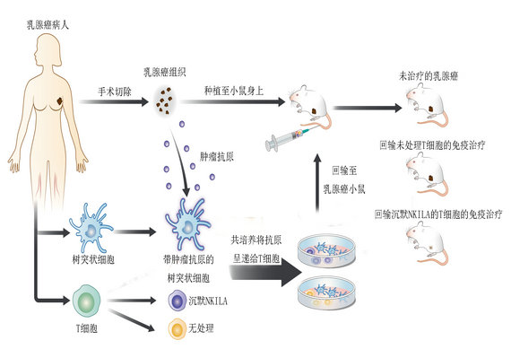 研究團隊在體外對T細(xì)胞進行了修飾,沉默了NKILA的表達(dá),再將T細(xì)胞回輸至患了乳腺癌的小鼠模型體內(nèi),NF-κB通路便會維持在激活狀態(tài)。他們發(fā)現(xiàn),如此一來腫瘤內(nèi)的T細(xì)胞明顯增多,被殺傷的腫瘤細(xì)胞增多,腫瘤明顯縮小。