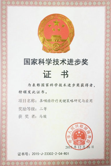 “鼻咽癌診療關(guān)鍵策略研究與應(yīng)用”獲得2015年國(guó)家科技進(jìn)步二等獎(jiǎng)(第一完成人)
