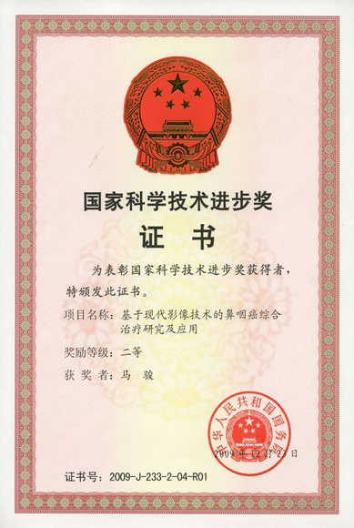 “基于現(xiàn)代影像技術(shù)的鼻咽癌綜合治療研究及應(yīng)用”獲得2009年“國(guó)家科技進(jìn)步二等獎(jiǎng)”(第一完成人)