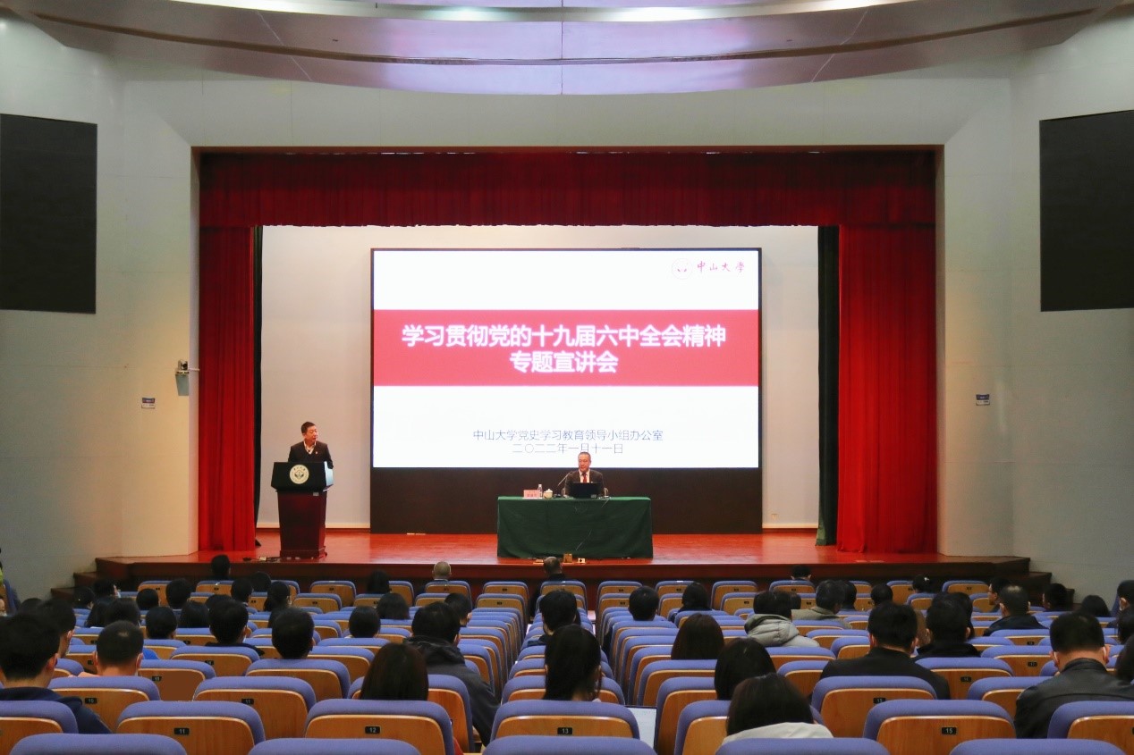 中山大學(xué)學(xué)習(xí)貫徹黨的十九屆六中全會精神專題宣講會現(xiàn)場(來源:黨委宣傳部 李澤暉攝)