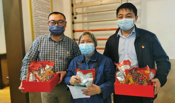 后勤教職工黨支部向老人送上年宵品(來源:孫逸仙紀(jì)念醫(yī)院)