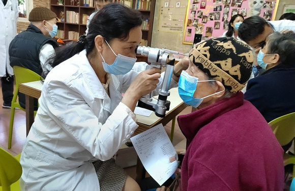 講座結(jié)束后,支部黨員在現(xiàn)場開展了義診活動?,F(xiàn)場老人們踴躍而有序地配合檢查,咨詢疾病的相關(guān)知識。支部黨員耐心、細(xì)致地為老人們進(jìn)行檢查,并根據(jù)檢查結(jié)果提出相應(yīng)的治療方式及護(hù)理建議,現(xiàn)場老人們非常滿意。活動現(xiàn)場一位95歲的奶奶激動地表示,13年前正是藍(lán)育青教授為她做的白內(nèi)障手術(shù),她一直銘記在心,這段數(shù)十年的醫(yī)患情為義診現(xiàn)場更添溫馨。