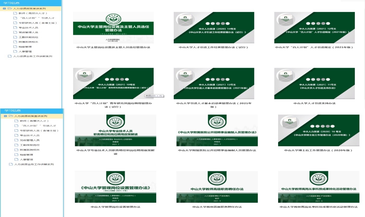 “人事加油站”已上線的部分制度文件(來源:人力資源管理處)