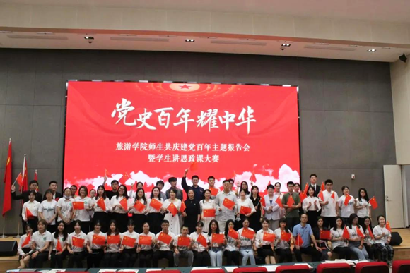 “黨史百年耀中華——旅游學(xué)院師生共慶建黨百年主題報告會暨學(xué)生講思政課大賽”師生合影(來源:旅游學(xué)院)