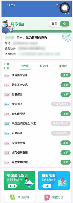 高效、便捷、用心的安排得到了學生的認可,生物醫(yī)學工程專業(yè)的顧庭葦對數(shù)字化迎新工作也是稱贊有加,“中大將智能化服務融入迎新的點滴之舉帶給了我極大便利。作為21級新生,感觸最深的便是企業(yè)微信中面面俱到、方便快捷的迎新服務,它不僅以時間為依據(jù)劃分各階段應做事宜,而且使用打卡方式將待辦事項一一列舉,時間與事件條條對應,清晰明了。”
