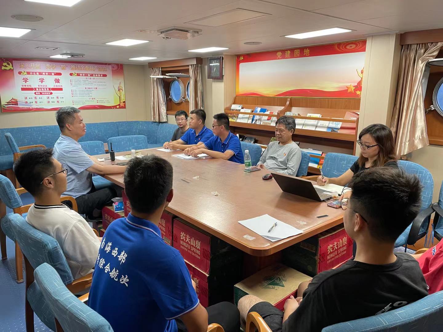 學(xué)院“南海西部夏季綜合航次”臨時(shí)黨支部書記邱春華副教授在“向陽紅”號科考船上主持黨支部活動(dòng)(來源:海洋科學(xué)學(xué)院)