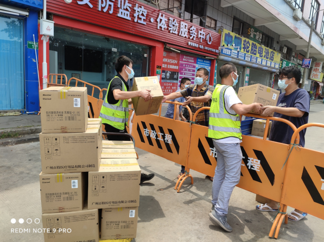 工作人員將腹透液和藥品送入疫情管控區(qū)域(來源:附屬第一醫(yī)院)