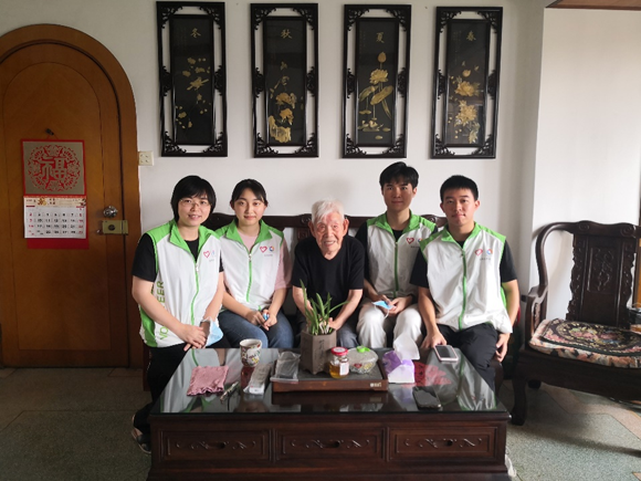 志愿者與黃錫泰老戰(zhàn)士合照(來(lái)源:中山醫(yī)學(xué)院)