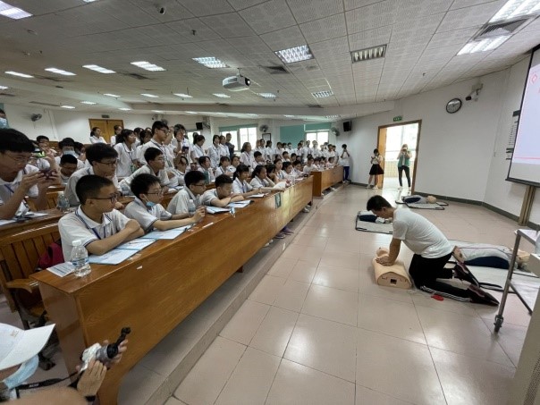 4月,學院應急救護科普團隊為佛山南海石門中學師生開展急救科普講座(來源:中山醫(yī)學院)