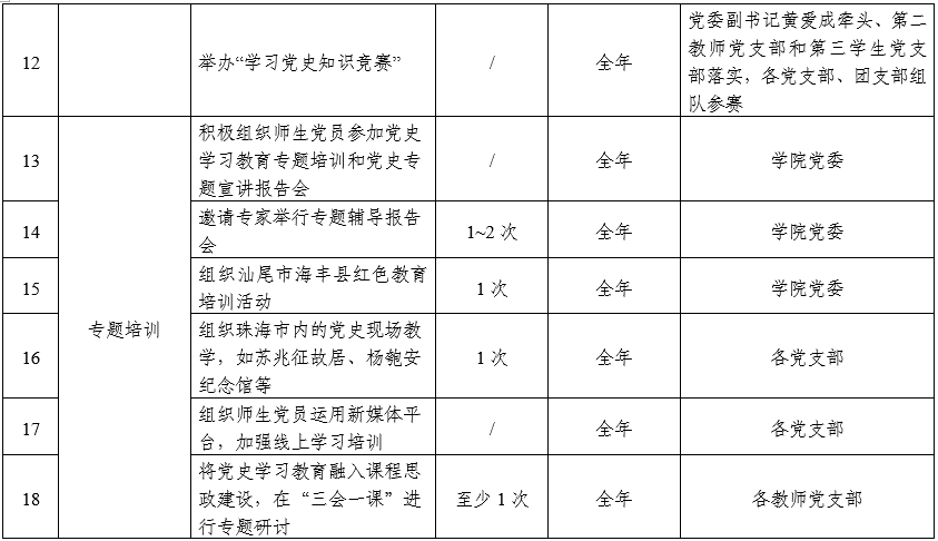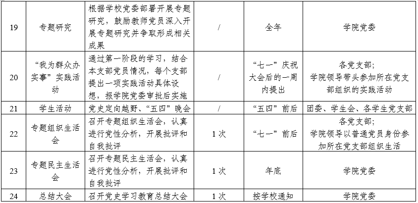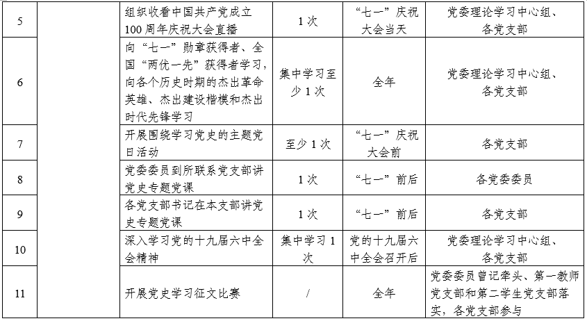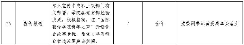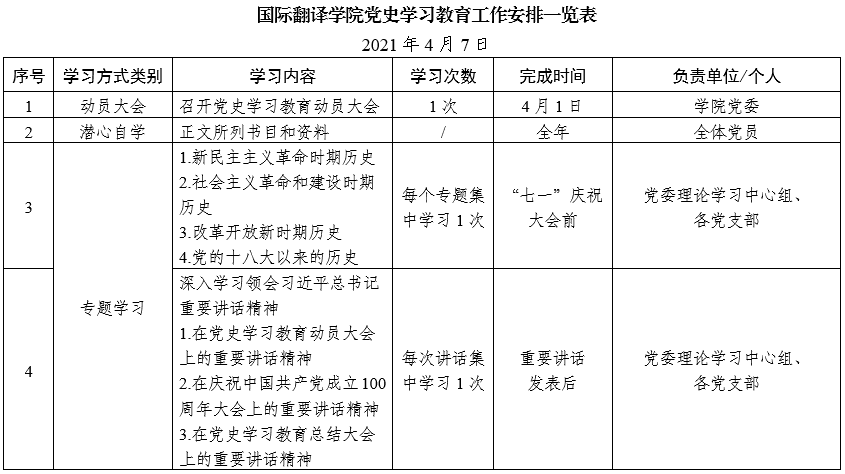 國際翻譯學(xué)院黨史學(xué)習(xí)教育工作安排一覽表(來源:國際翻譯學(xué)院)