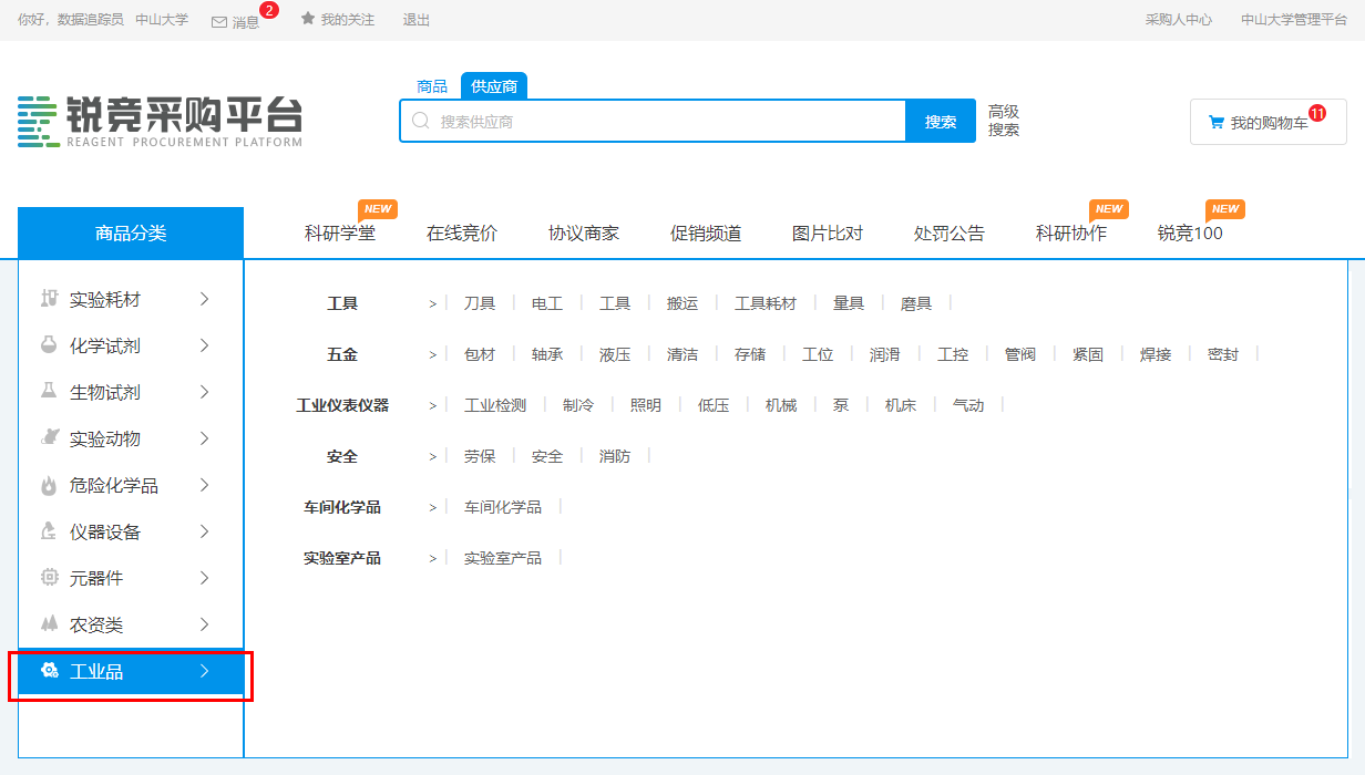 實(shí)驗(yàn)材料采購(gòu)平臺(tái)(來(lái)源:設(shè)備與實(shí)驗(yàn)室管理處)