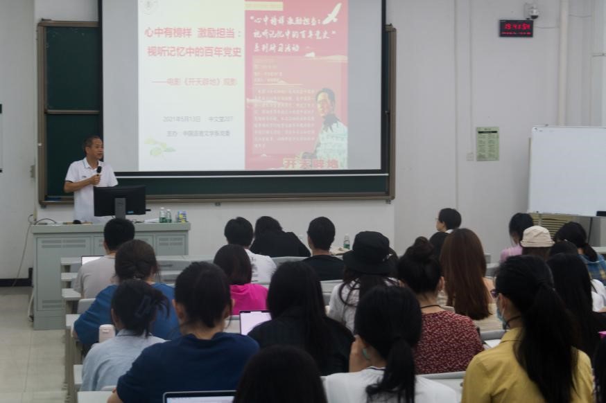 中大新聞網(wǎng)廣州5月21日電(通訊員李勁峰、尹思雨)為了進(jìn)一步做好黨史學(xué)習(xí)教育,近日,中國(guó)語言文學(xué)系黨委組織開展“心有榜樣 激勵(lì)擔(dān)當(dāng)——視聽記憶中的百年黨史”系列研習(xí)活動(dòng),第一期研習(xí)活動(dòng)在南校園中文堂舉行,邀請(qǐng)了林崗教授圍繞電影《開天辟地》和中國(guó)共產(chǎn)黨的誕生作專題講座。各師生黨支部、學(xué)生團(tuán)支部參加講座。活動(dòng)由系黨委書記于海燕主持。