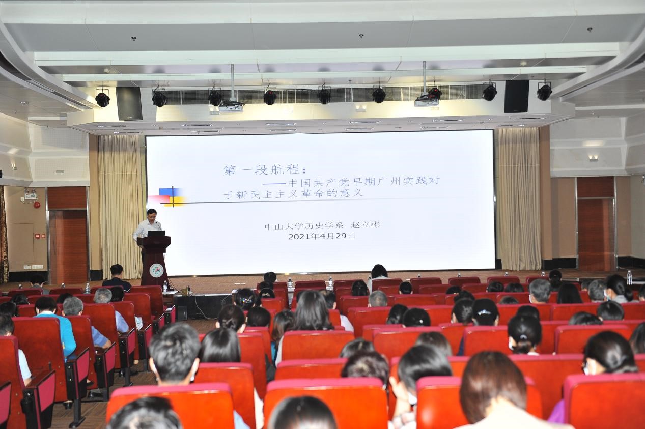 報(bào)告會(huì)邀請(qǐng)中國(guó)孫中山研究會(huì)副會(huì)長(zhǎng)、歷史學(xué)系趙立彬教授專(zhuān)題講授了《第一段航程:中國(guó)共產(chǎn)黨早期廣州實(shí)踐對(duì)于新民主主義革命的意義》。