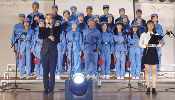 活動中,由學院主禮隊排演的《建國》《建業(yè)》《追夢》三場話劇串聯(lián)起“建黨、建國、發(fā)展、追夢”四個篇章,講述了中國共產(chǎn)黨的百年崢嶸。《紅星閃閃》《映山紅》《沒有共產(chǎn)黨就沒有新中國》,熟悉的旋律回溯著共產(chǎn)黨早期的艱辛歲月;《北京的金山上》《我愛祖國的藍天》訴說著建國之初上下一心、艱苦奮斗的蓬勃局面;《東方之珠》《走進新時代》講述了改革開放以來國家日新月異的變化;《明天會更好》《不忘初心》強調(diào)共產(chǎn)黨人不忘初心、牢記使命,開創(chuàng)燦爛未來。研究生合唱團為大家?guī)砹颂貏e節(jié)目《七子之歌》,動人的演唱深深震撼了在場觀眾的心。
