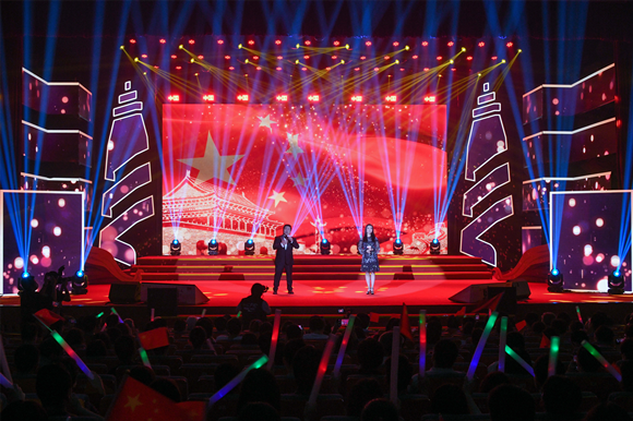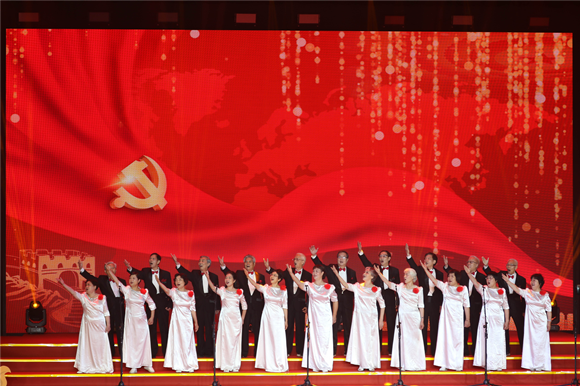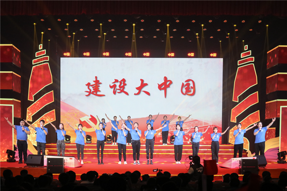 全場合唱《沒有共產(chǎn)黨就沒有新中國》(黨委宣傳部 曾傲攝)