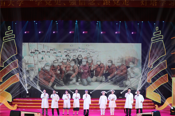 一首飽含深情的歌曲《在燦爛陽光下》拉開了活動的序幕。沒有共產(chǎn)黨就沒有新中國,中山大學(xué)藝術(shù)學(xué)院青年學(xué)生用歌聲表達(dá)對黨、對祖國、對人民的深情大愛。點亮理想的燈,照亮前行的路,黨的光輝引領(lǐng)青年一代披荊斬棘、砥礪前行,激勵著青年用信仰之光照亮青春路,用信仰之力開辟新征程。