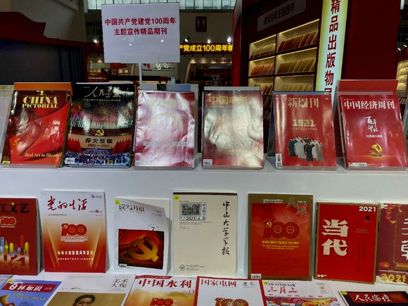 《中山大學(xué)學(xué)報》(社會科學(xué)版)在2021北京圖博會“精品期刊”展臺(來源:期刊管理中心)