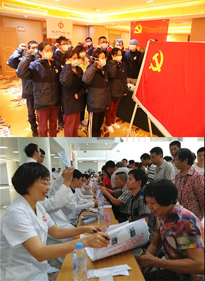 附屬第一醫(yī)院馳援武漢醫(yī)療隊14名火線入黨的新黨員在武漢協(xié)和醫(yī)院和漢口醫(yī)院宣誓入黨(上圖)