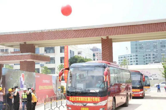 運(yùn)送學(xué)生的客車(chē)順利抵達(dá)深圳校區(qū)(圖片來(lái)源:黨委宣傳部)