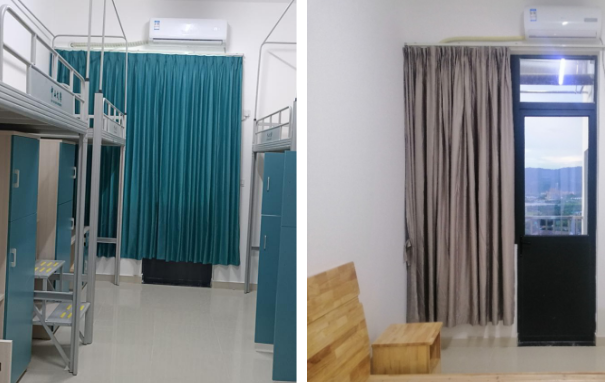 學(xué)生宿舍內(nèi)均配置了分體空調(diào)和落地風(fēng)扇。