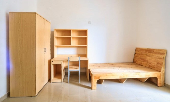 2020年3月,學(xué)校通過(guò)公開招標(biāo)遴選出具有良好信譽(yù)和實(shí)力的廠家負(fù)責(zé)學(xué)生宿舍家具的生產(chǎn)安裝。