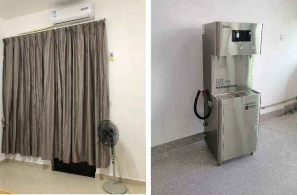 學(xué)生宿舍空調(diào)和風(fēng)扇(左) 、學(xué)生宿舍公共區(qū)域直飲水設(shè)備(右)