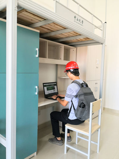 工作人員在學(xué)生宿舍測試網(wǎng)速(有線網(wǎng)) (圖片來源:網(wǎng)絡(luò)與信息技術(shù)中心)