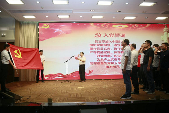 下午14時(shí),在雄壯的國(guó)歌聲中,大會(huì)正式開始。在黨委書記丘國(guó)新帶領(lǐng)下,新黨員面對(duì)黨旗鄭重宣誓:“我志愿加入中國(guó)共產(chǎn)黨……”洪亮的宣誓聲響徹會(huì)場(chǎng),經(jīng)久不息。老黨員也再次重溫了入黨誓詞。