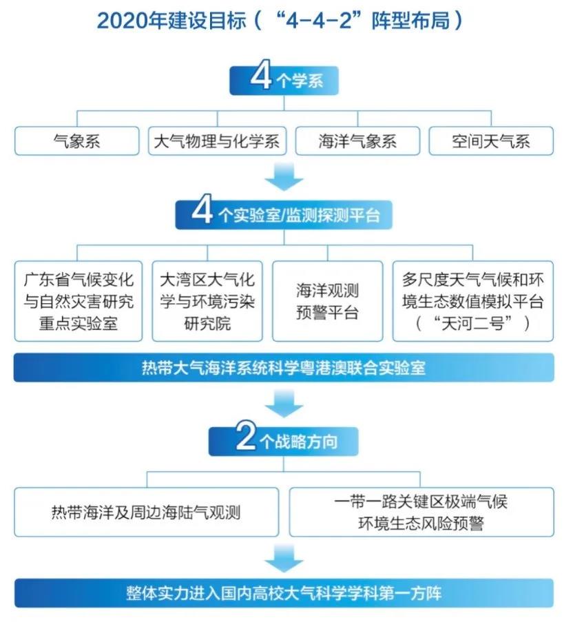 在十四五規(guī)劃的布局之年,大氣科學(xué)學(xué)院在原來“4-4-2”發(fā)展布局基礎(chǔ)上提出未來五年“5-3-1”的發(fā)展思路:“5”即在原來四個系的基礎(chǔ)上增加建立“冰凍圈科學(xué)系”,緊貼國家重大戰(zhàn)略和學(xué)術(shù)前沿,豐富學(xué)科增長點;“3”即緊密依托“廣東省氣候變化與自然災(zāi)害研究重點實驗室”“熱帶大氣海洋系統(tǒng)科學(xué)教育部重點實驗室”“環(huán)珠江口氣候環(huán)境與空氣質(zhì)量變化野外科學(xué)觀測研究站”三個省部級平臺,進一步聚集資源、整合隊伍,發(fā)揮大平臺效應(yīng);“1”即建立一個國家重點實驗室,明確以沖擊國內(nèi)學(xué)科排名A+作為學(xué)院的奮斗目標。