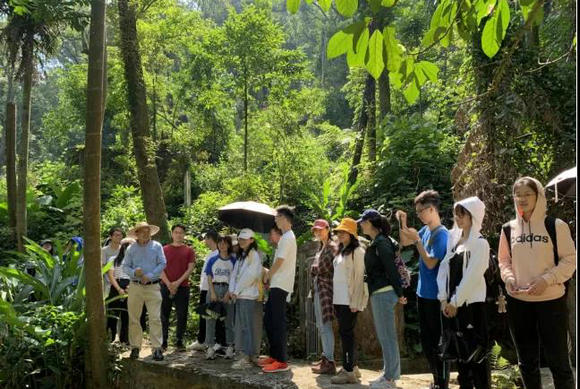 班主任帶領(lǐng)學(xué)生參觀鼎湖山森林生態(tài)系統(tǒng)定位研究站(來源:大氣科學(xué)學(xué)院)