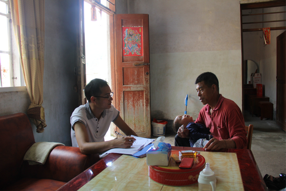 沙敏在貧困戶盤叔家中核實(shí)危房改造需求(來源:校工會(huì))
