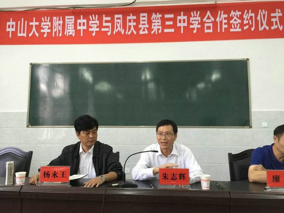 教育扶貧是根本性的、可持續(xù)的減貧手段。2015年鳳慶第三中學(xué)成立之初,學(xué)校的行政管理、教學(xué)設(shè)施和師資力量方面都還處于起步階段。因此,鳳慶三中校長段成雙想到可以向朱志輝尋求幫助,看看中大能不能在學(xué)校建設(shè)和教學(xué)資源上施以援手。朱志輝接到這一請(qǐng)求后,十分掛心鳳慶三中的建設(shè)。鳳慶三中的學(xué)生們大多來自各個(gè)鄉(xiāng)鎮(zhèn),對(duì)鳳慶三中開展教育幫扶能有效促進(jìn)當(dāng)?shù)亟逃Y源的均衡與下沉,讓更多鄉(xiāng)鎮(zhèn)學(xué)生也能接受優(yōu)質(zhì)的教育資源。于是,他連假期也不休息,馬不停蹄地趕到廣州,與中山大學(xué)附屬中學(xué)校長廖珂溝通對(duì)接。雙方一拍即合,開啟了兩校合作辦學(xué)的新項(xiàng)目,牽起這段跨越千里的情緣。9月,朱志輝親眼見證了兩校合作簽約的儀式。中大附中自2015年起,對(duì)鳳慶三中開展為期五年的教學(xué)幫扶,兩校一起攜手共同進(jìn)步,阻斷貧困在鳳慶的代際傳遞。