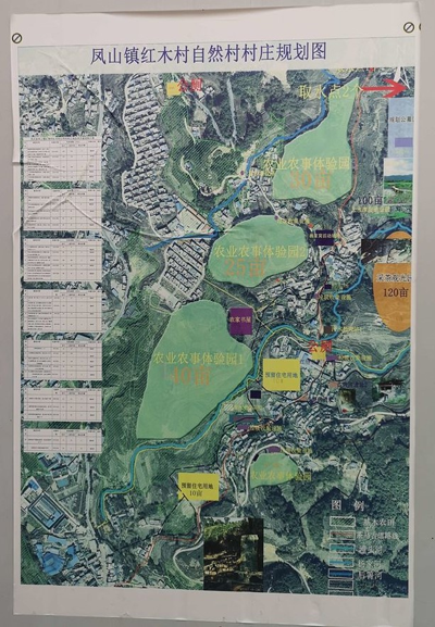 2019年初,紅塘村順利通過(guò)第三方檢查,進(jìn)入鞏固脫貧成果的過(guò)渡期。春節(jié)期間,郭興勇主動(dòng)放棄春節(jié)休假的機(jī)會(huì),留在紅塘,與回鄉(xiāng)探親的鄉(xiāng)賢們一同討論鄉(xiāng)村振興的思路與規(guī)劃。哪里需要筑一條路?哪里的地塊還沒(méi)有被利用起來(lái)?哪里可以建一個(gè)旅游休閑區(qū)?面對(duì)這些問(wèn)題,他們一個(gè)一個(gè)地討論,希望為紅塘村摸索出一條適宜的發(fā)展道路。通過(guò)這樣的例會(huì),他們初步制定了開(kāi)發(fā)方案,繪制出《鳳山鎮(zhèn)紅塘村紅木村自然村村莊規(guī)劃圖》。