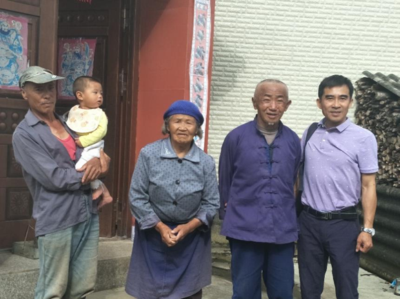 郭興勇(右)在紅塘村張廷華家核實(shí)紅卡信息(來(lái)源:校工會(huì))