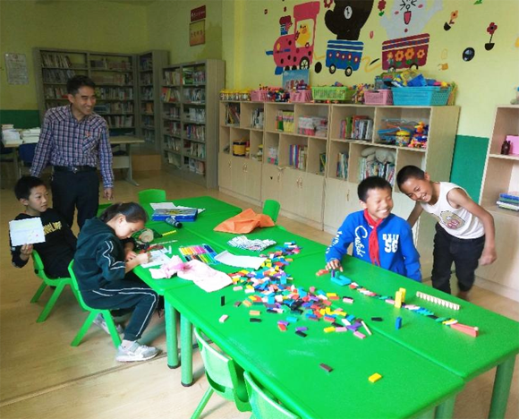 郭興勇與孩子們課后做益智游戲(來(lái)源:校工會(huì))