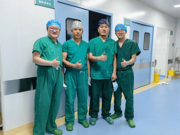 凌晨2:30,手術(shù)準(zhǔn)備就緒。由于患者患有高血壓,當(dāng)?shù)蒯t(yī)院無法進(jìn)行全麻。孫健副主任醫(yī)師決定進(jìn)行開腹手術(shù)。通過一個不到三公分的切口,醫(yī)療隊(duì)隊(duì)員同當(dāng)?shù)氐脑麽t(yī)生和前來幫助的旦增醫(yī)生用時(shí)30分鐘順利完成了手術(shù)。手術(shù)中,孫健副主任醫(yī)師積極同當(dāng)?shù)氐脑骱偷┰鲠t(yī)生交流手術(shù)關(guān)鍵要點(diǎn)及相關(guān)技巧。雖然已是深夜,空氣也有些寒冷,但是隊(duì)員們深切感受到當(dāng)?shù)蒯t(yī)生的感激和熱情。