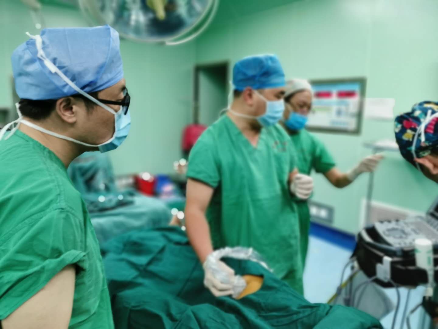 手術(shù)中進(jìn)行超聲引導(dǎo)下穿刺(來(lái)源:附屬喀什醫(yī)院)