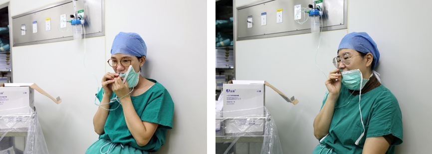 醫(yī)護(hù)人員在手術(shù)間隙吸氧緩解高原反應(yīng)(來源:中山眼科中心)