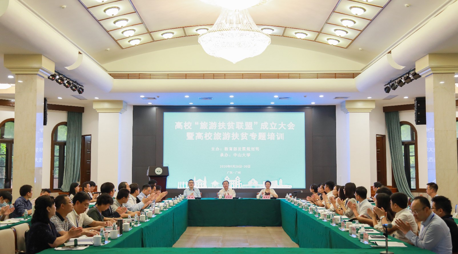 中大新聞網(wǎng)廣州10月2日電(通訊員 林煒雙)為深入貫徹落實習(xí)近平總書記關(guān)于扶貧工作的重要論述精神,進(jìn)一步推進(jìn)高校組團(tuán)式扶貧工作,9月28日至30日,由我校牽頭、22所教育部直屬高校(含部省合建高校)自愿組成的高校組團(tuán)式扶貧協(xié)作組織——高?!奥糜畏鲐毬?lián)盟”正式成立。教育部發(fā)展規(guī)劃司副巡視員晁桂明,我校黨委副書記國亞萍,22所旅游扶貧聯(lián)盟高校代表共同出席會議。會議由我校校長助理王帆主持。