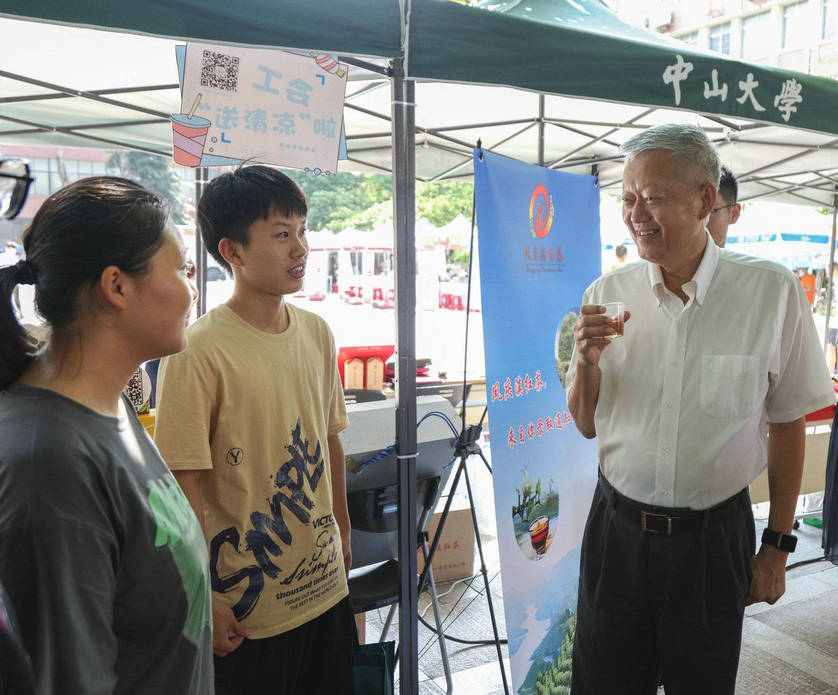 為加強(qiáng)對(duì)學(xué)生的愛(ài)國(guó)主義教育,使學(xué)生牢記“國(guó)之大者”,中山大學(xué)和鳳慶縣共同策劃了鳳慶縣優(yōu)秀畢業(yè)生表彰活動(dòng),并聘請(qǐng)優(yōu)秀畢業(yè)生作為鳳慶滇紅茶文化推廣志愿者,將鳳慶的茶葉和茶文化帶到學(xué)生所在的高校。中山大學(xué)作為鳳慶縣的幫扶高校,將鳳慶的茶葉放入本科錄取通知書(shū)里,使鳳慶茶葉伴隨著錄取通知書(shū)走到了全國(guó)各地,走進(jìn)了千家萬(wàn)戶。8月31日,為彌補(bǔ)家長(zhǎng)學(xué)生將錄取通知書(shū)里的鳳慶茶珍藏而品嘗不到“滇紅味道”的遺憾, 3名新生作為鳳慶滇紅茶文化推廣志愿者在鳳慶縣掛職副縣長(zhǎng)張哲的帶領(lǐng)下,在中山大學(xué)南校園親新廣場(chǎng)開(kāi)展滇紅茶免費(fèi)品嘗活動(dòng),將“錄取通知書(shū)里的味道”帶進(jìn)了中大校園?;顒?dòng)得到了校領(lǐng)導(dǎo)的大力支持,陳春聲書(shū)記、高松校長(zhǎng)、國(guó)亞萍副書(shū)記、余敏斌副書(shū)記、楊東華副校長(zhǎng)來(lái)到活動(dòng)現(xiàn)場(chǎng)看望學(xué)生,親切地與學(xué)生交流,并送上了入學(xué)禮包。學(xué)生們感到非常激動(dòng),由衷感謝學(xué)校對(duì)他們的關(guān)心關(guān)愛(ài)。
