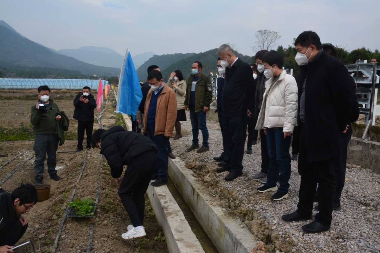 陳春聲書記、高松校長(zhǎng)一行參觀豐陽(yáng)鎮(zhèn)柯木灣夏東生態(tài)村(來源:黨委宣傳部 邱清萌攝)