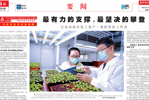 新聞網(wǎng)訊 5月30日,在《新華每日電訊》第4版題為《最有力的支撐,最堅決的攀登——記錄奮戰(zhàn)在復工復產(chǎn)一線的科技工作者》的通訊中,新華社記者采訪了全國人大代表、中國科學院院士、我校校長羅俊。