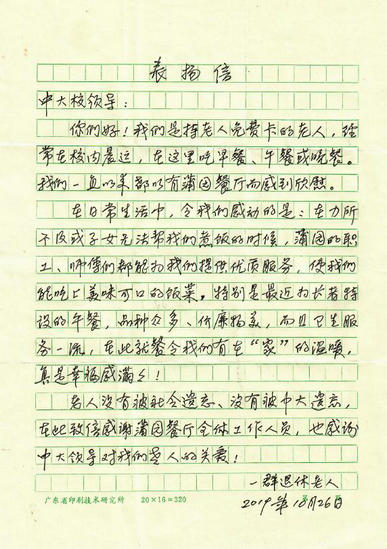 產(chǎn)業(yè)集團(tuán)飲食服務(wù)中心開設(shè)“長(zhǎng)者專窗”,解決離退休老教職工吃飯難問題。9月份,在蒲園餐廳推出“長(zhǎng)者專窗”,使許多離退休老教職工終于可以不用買菜、不用做飯,出門走幾步路就能吃上香噴噴的飯菜。10月23日,總務(wù)處、離退休處、產(chǎn)業(yè)集團(tuán)、離退休協(xié)會(huì)召開會(huì)議聽取對(duì)“長(zhǎng)者專窗”的意見和建議。針對(duì)部分老教職工反映菜式品種單一、價(jià)格較高等問題,飲食服務(wù)中心組織專業(yè)廚師隊(duì)伍進(jìn)行研究,當(dāng)天即推出12元/份的長(zhǎng)者套餐,每天有6款不同的主菜、配菜,2款青菜及湯可供選擇,得到離退休老教職工的好評(píng),收到離退休老教職工的感謝信。