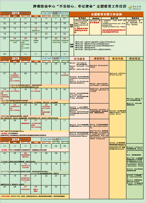 根據(jù)制定的主題教育實施方案,腫瘤防治中心制作主題教育“工作日歷”,工作任務與時間節(jié)點一目了然。
