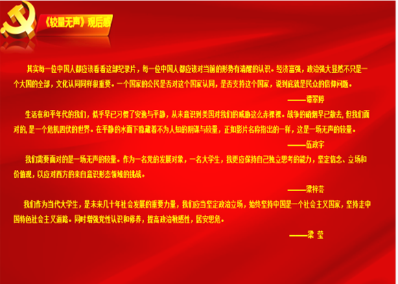 在培養(yǎng)支部成員方面,黨支部堅持采用學生喜聞樂見的方式和方法,對支部成員進行潛移默化的教育。通過觀看紀錄片《較量無聲》;黨課上分析我國及周邊政治、軍事及經(jīng)濟形勢,剖析中美貿(mào)易戰(zhàn)實質(zhì)等內(nèi)容,將正確的“三觀”根植于支部成員心中,引導支部成員牢固樹立“四個意識”,堅定“四個自信”,堅決做到“兩個維護”,喚醒內(nèi)心愛國愛黨意識,煥發(fā)支部活力,增強支部凝聚力。
